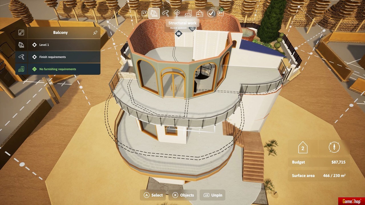 Eine zugängliche Simulation, einfach mit einem Controller zu spielen, mit präzisen Bauwerkzeugen. Ungeheure kreative Freiheit: Der Fantasie sind keine Grenzen gesetzt! Das einzige Spiel, in dem Spieler den Plan erstellen, Handwerker auswählen, die Baustelle beobachten und die Innenausstattung fertig stellen.