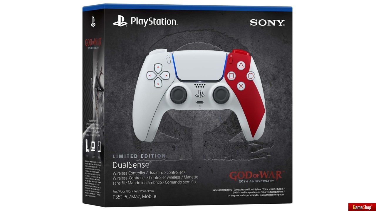 Das Design des Controllers soll an die aschfahle Haut und die scharlachroten Tätowierungen des legendären Geistes von Sparta erinnert, und ist eine Hommage an Kratos, der in der griechischen Antike und den Neun Welten unzählige Herausforderungen gemeistert hat.