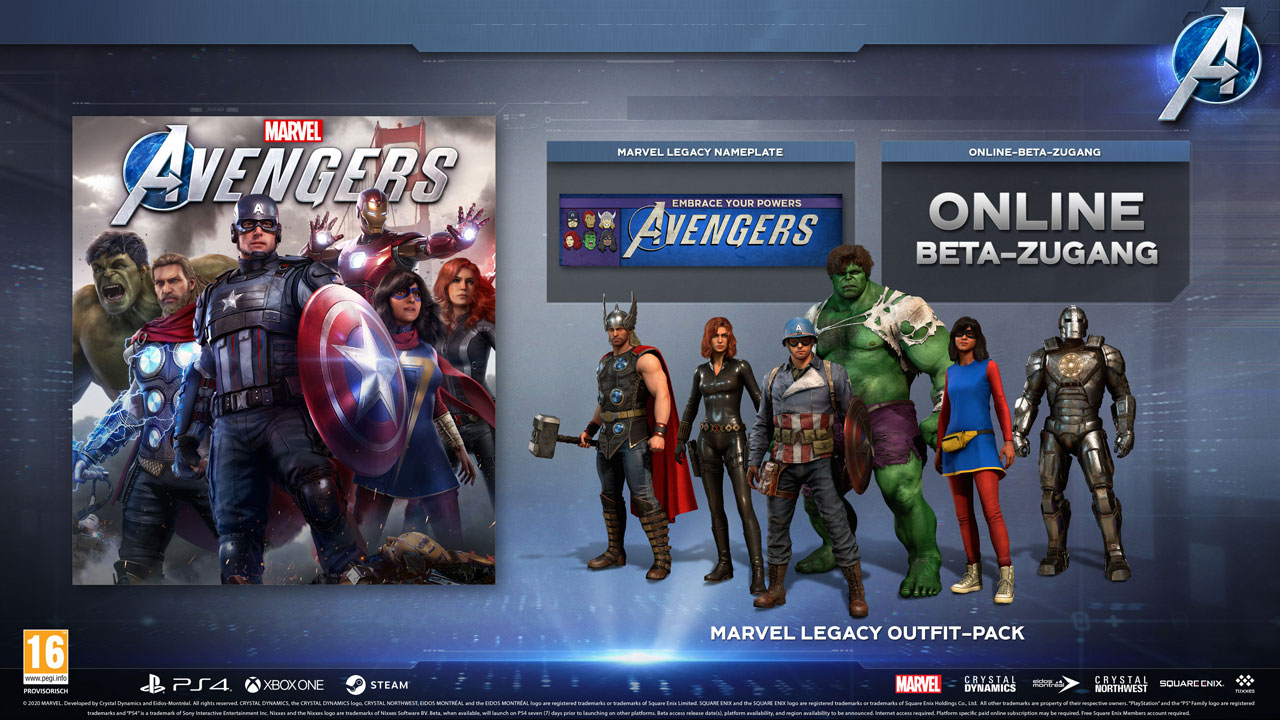 Marvels Avengers bietet eine einzigartige Version der berühmten Superhelden, einschließlich Captain America, Iron Man, Hulk, Black Widow und Thor. Die Charakter-basierte Story ist voller heldenhaftem Mut und Menschlichkeit, wie von Marvel bekannt, und wird integriert in eine kinoreife Kampagne mit unzähligen Einzelspieler- und Koop-Missionen.