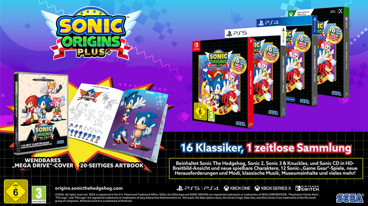 Erlebe die gesammelten Abenteuer von Sonic the Hedgehog in dem neu überarbeiteten Sonic Origins Plus mit 16 legendären Sonic-Titeln.