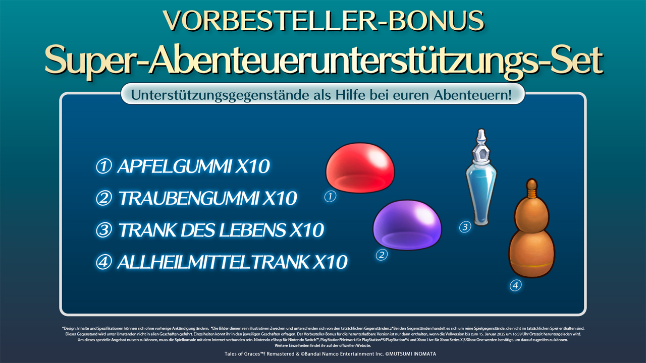 Tales of Graces f Remastered ist ein Action-RPG mit rasanten Kämpfen, in denen ihr passend zu eurer Spielweise zwischen verschiedenen Kampfstilen wechseln könnt. Erlebt eine bewegende Story voller Abenteuer, in der die wahre Bedeutung von Verbindungen und Freundschaft ausgelotet wird. Begebt euch auf den Planeten Ephinea und übernehmt die Rolle von Asbel Lhant. Gemeinsam mit seinen Freunden aus Kindertagen und der geheimnisvollen Sophie begibt er sich auf eine Reise, nachdem er in einen Konflikt zwischen drei Königreichen gezogen wurde, die um die Kontrolle über den Planeten kämpfen!